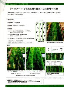 「ナルオターフ」は、一般社団法人 鳴尾ゴルフ倶楽部(鳴尾GC)の1番グリーンで発見された新しい姫コウライシバの系統です