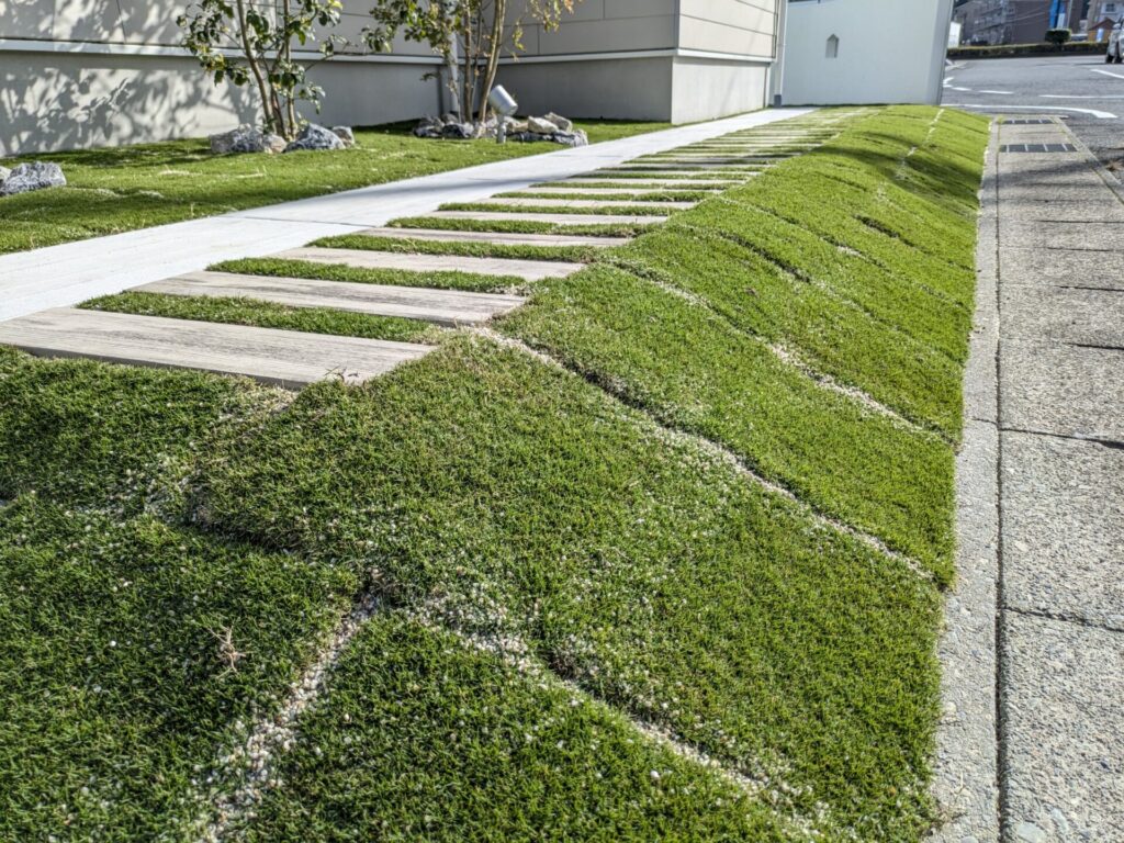 『緑を取り入れた雑草対策=人工芝』と思われがちですが、実は天然芝でも雑草を抑えることができます。