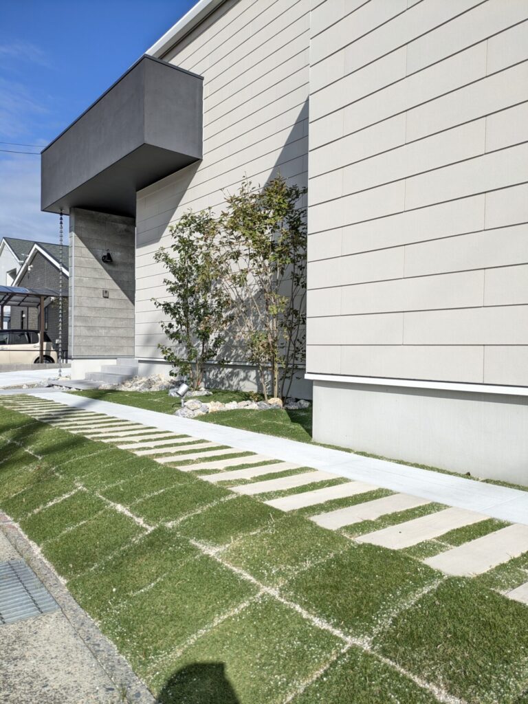 今回は、芝刈り不要?!がキャッチコピーの「ナルオターフ」という天然芝を取り入れた施工事例についてご紹介させていただきます。